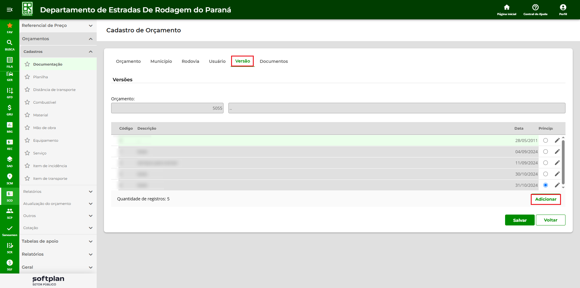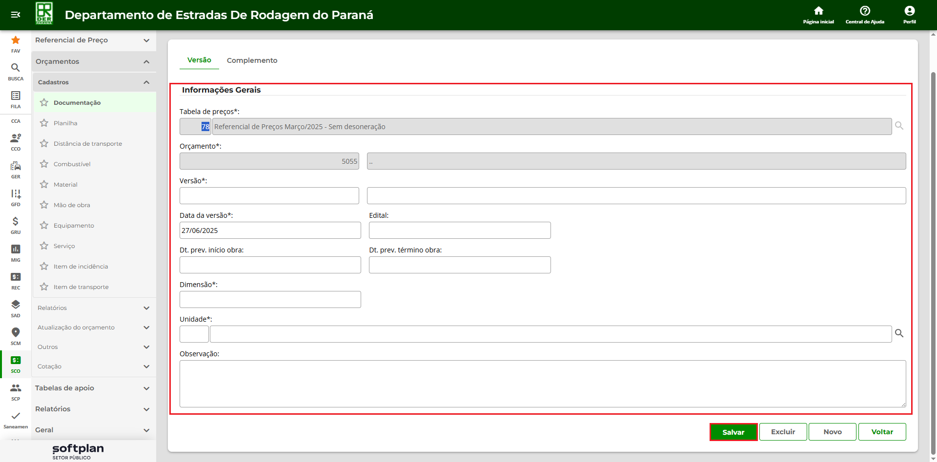 Para cadastrar a versão de um orçamento, siga o passo a passo abaixo: