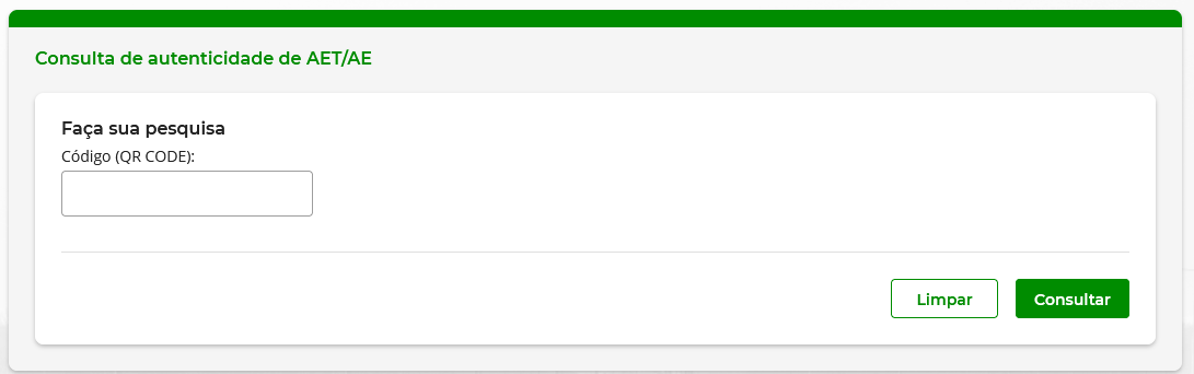 ❗Uma outra maneira de consultar a autenticidade de uma AET, é fazendo a leitura do QR Code presente no documento oficial de AET. O fiscal deverá apontar a câmera do seu dispositivo móvel para o QR Code do documento de AET apresentado pelo transportador e, então, o sistema direcionará para a tela de resumo da AET, apresentando a informação de validade e, também, a possibilidade de baixar uma cópia do documento de AET para conferência no dispositivo do agente.