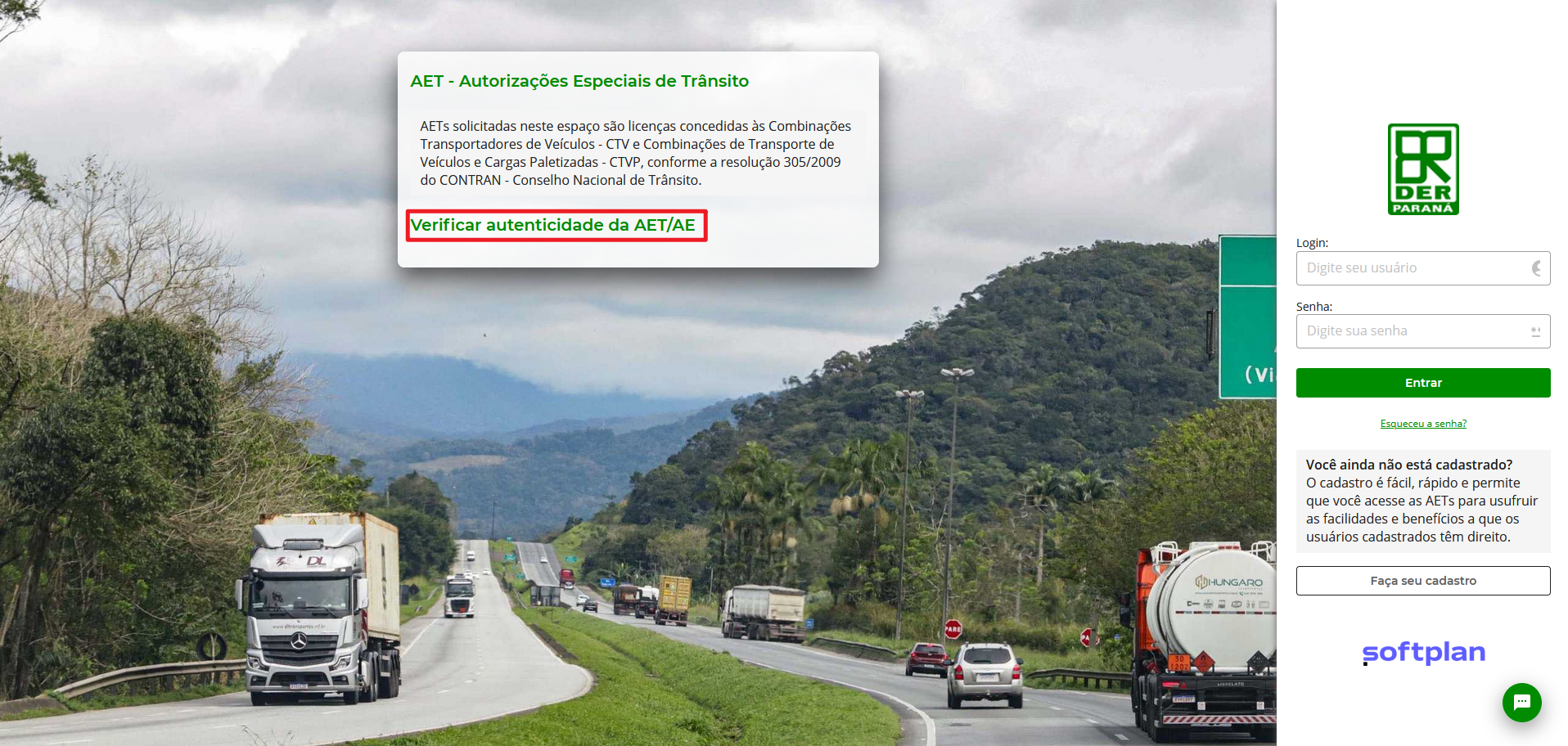1 – Acesse o Portal AET e clique no link ‘Verificar autenticidade da AET/AE’.