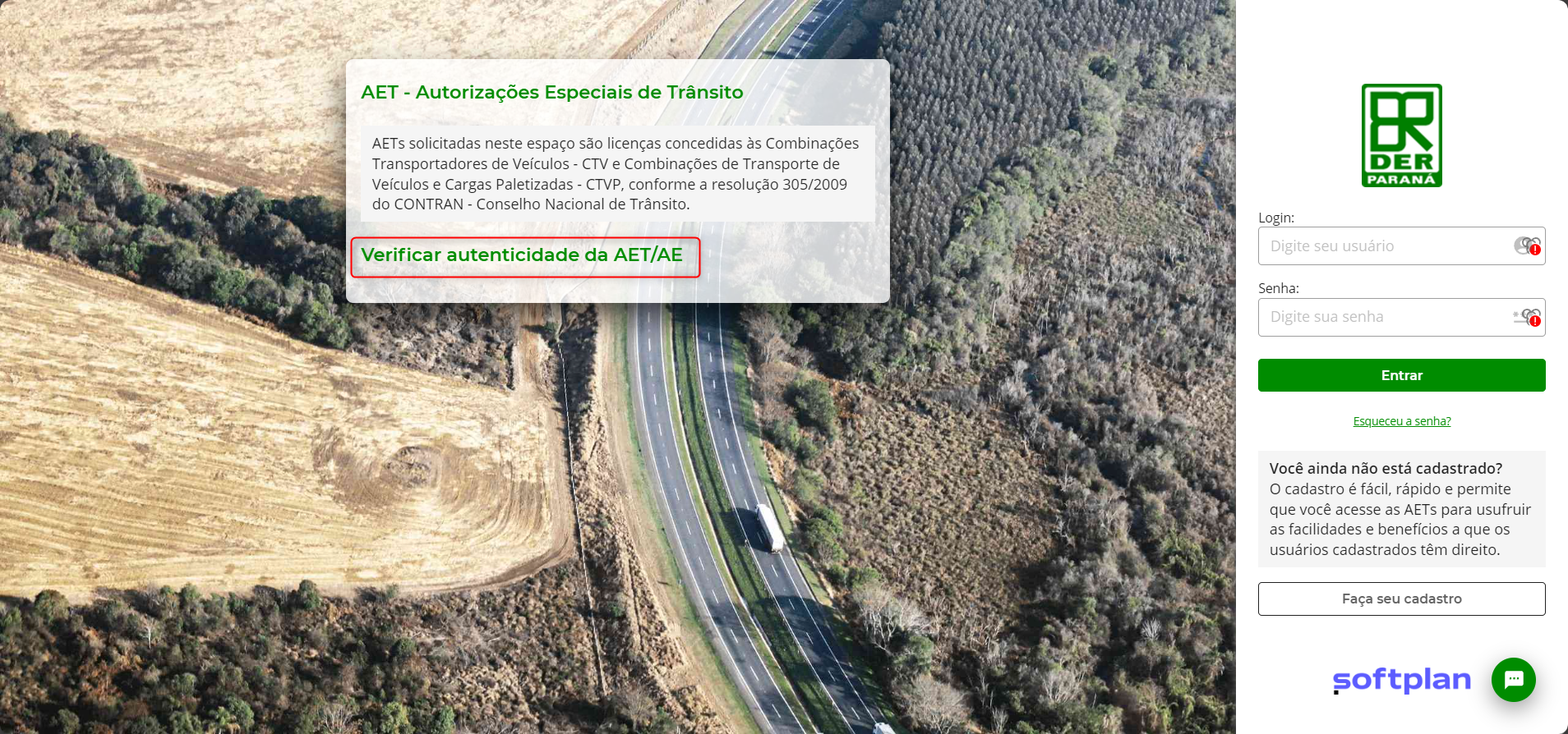 1 – Na página de login do portal, clique em ‘Verificar autenticidade da AET/AE.