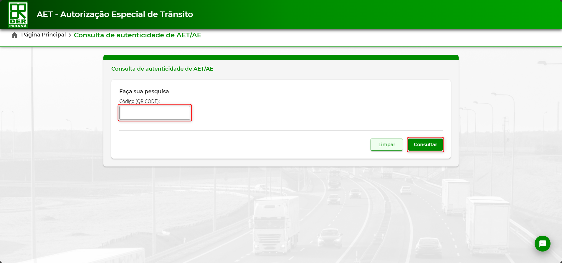 A funcionalidade de consulta de autenticidade possibilita a verificação da autenticidade de uma AET sem a necessidade de estar logado ao portal AET. Permite ao fiscal realizar consultas de maneira rápida em suas fiscalizações e apresenta exatamente o mesmo documento que estará em posse de transportador fiscalizado.
